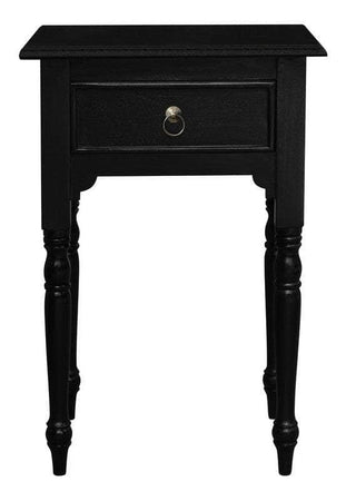 Immerse yourself in the timeless elegance of the Milly Turn Leg 1 Drawer Side Table. Drawing inspiration from classic European design, this exquisite piece embodies a fusion of Parisian charm and traditional craftsmanship, making it a captivating addition to any sophisticated interior.This beautifully crafted side table showcases the richness and durability of solid mahogany timber, ensuring that each piece stands as a testament to natures raw beauty and strength. The turn leg design exudes a sense of refinement, reminiscent of the grandeur found in European manors and Parisian apartments.The single drawer, adorned with a brass ring pull, offers a touch of antique allure while providing practical storage space for your cherished belongings. Whether placed beside your favorite armchair or as a bedside companion, the Milly Turn Leg Side Table promises to enhance your living space with its graceful presence.Available in a sophisticated black, a warm mahogany finish, and a pristine white, this side table seamlessly blends into a variety of interior styles, from classic to contemporary. Each color variant tells its own story, inviting you to create a space that resonates with your personal aesthetic.