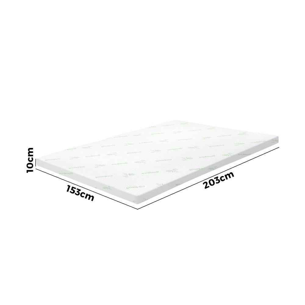Simple Deals Memory Foam Mattress Topper Bed Cool Gel Bamboo Cover Underlay Queen 10CM maually add