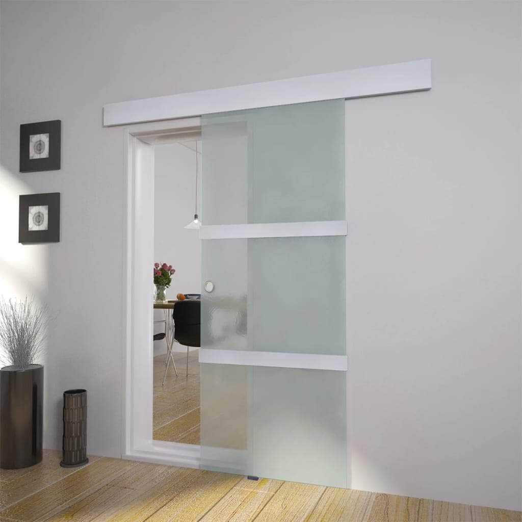 With this beautiful glass sliding door, you are able to save space and divide different rooms in your house or office. The sliding glass door can be opened and closed quietly. The simplicity and lightness of the glass sliding door promote transparency and allow plenty of light. The suspension system with the bottom rail provides a safe run of the glass sliding door. The special adjustable stoppers ensure safe lateral limitation of the sliding path. The door can be easily installed. Delivery includes 1 aluminium track, 3 glasses, 1 cover strip, 1 floor guide, 2 door stoppers, 1 door knob, 2 mounting kits and 2 connectors for the rail.