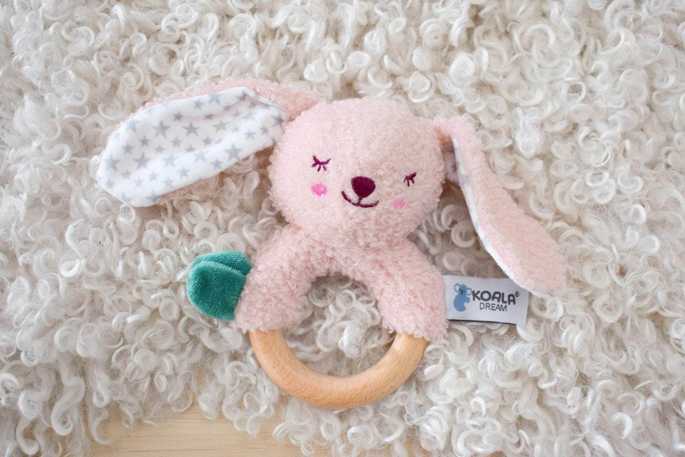 Introducing the Snuggle Buddy Berry Bunny Wooden Ring Rattle, a cherished companion for your little one. Crafted with affection and attention to detail, this enchanting rattle combines the adorable appeal of a plush pink bunny nestled within a sleek wooden ring, providing a delightful array of sensations to discover. The bunnys velvety softness beckons tiny fingers to explore, while the natural wood ring offers a comforting relief for teething gums. More than just aesthetically pleasing, these contrasting textures are intentionally designed to ignite sensory curiosity and encourage tactile exploration, ensuring that each playtime with the Snuggle Buddy Berry Bunny Wooden Ring Rattle is filled with wonder and happiness for your young adventurer.