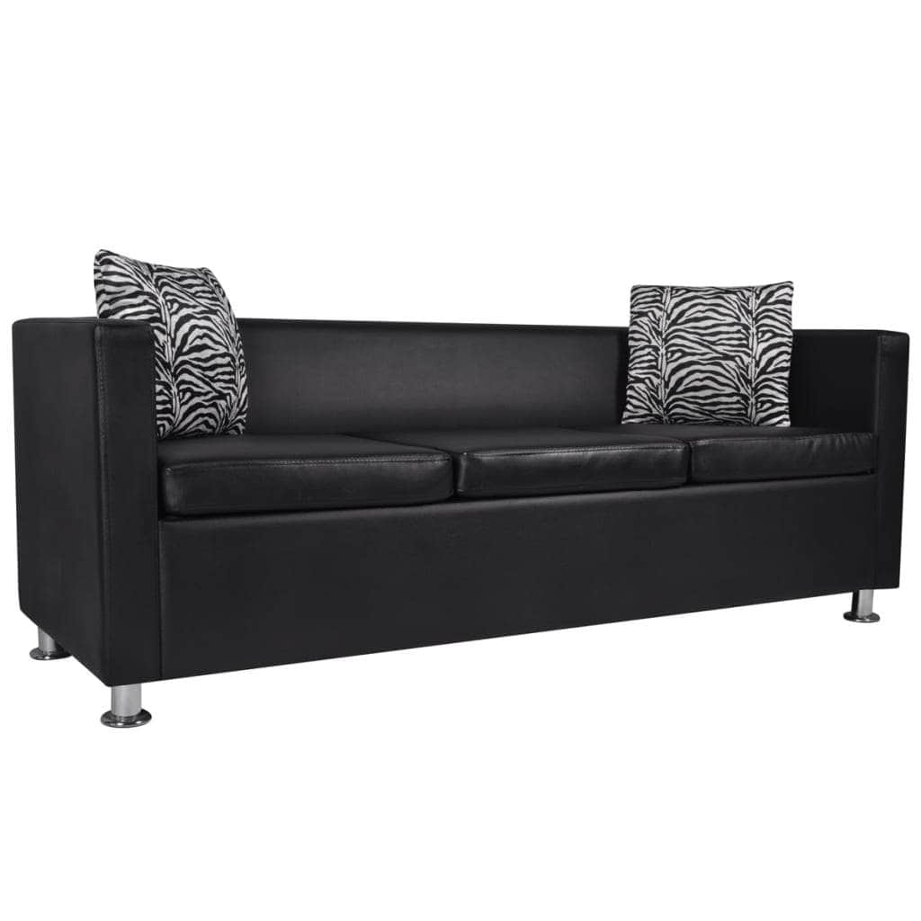 This 3-seater sofa, made from quality artificial leather, provides optimum seating comfort. It is a great choice to bring in an air of class into your home. This 3-seater sofa takes up little space and offers simple lines to decorate any room whether classic or modern. It features a wide seating area and thickly padded cushions for the ultimate seating comfort. The sofa is upholstered with high-quality and durable artificial leather that is hardwearing and easy to clean. Its simple design is elevated by the excellent stitching. The sofa is well constructed with sturdy feet that give long lasting durability. Delivery includes 1 x 3-seater sofa and 2 x loose pillows.