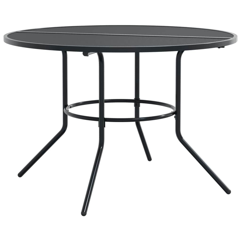 This garden chair set featuring a stylish look is a striking addition to your current outdoor and indoor living space. Powder-coated steel: This garden bar set is made of powder-coated steel, which is an exceptionally hard and strong material. It offers sturdiness and stability. The powder coating on the surface of steel creates a protective layer against rust, corrosion, and wear.Practical design: These bistro chairs have backrests, which can provide you added comfort, so you can sit comfortably on the chairs.Stackable function: The stackable design of the chairs save room space.Mesh tabletop: The mesh tabletop features beautiful patterns and is suitable for placing drinks, food and other essentials.Wide applications: This multifunctional outdoor chair set features a perfect shape to fit in any environment in your house. It can be used in your kitchen, dining room, living room, patio etc.