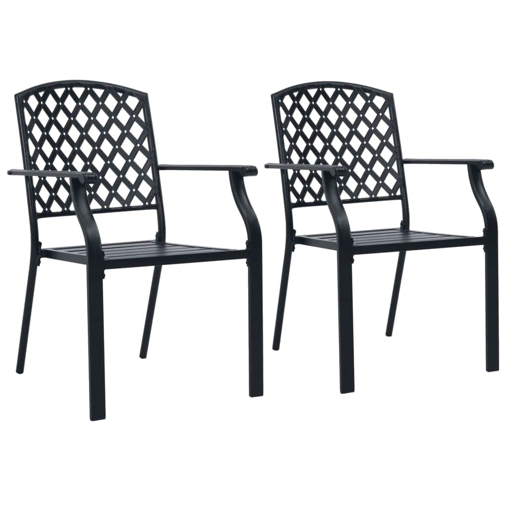 These stacking dining chairs have a mesh design, and will add a touch of industrial style to your patio, garden or dining room. The high-quality garden chairs are made of sturdy steel that has been e-coated and then powder-coated. The e-coating (electrophoretic coating) is applied to make the chairs resistant to rust, weather, and long-term outdoor use, while the powder coating helps to enhance the durability. The garden chairs are easy to clean and maintain. The dining chairs can be stacked to save space when not in use. The chairs are easy to assemble. Delivery includes 2 stacking chairs.