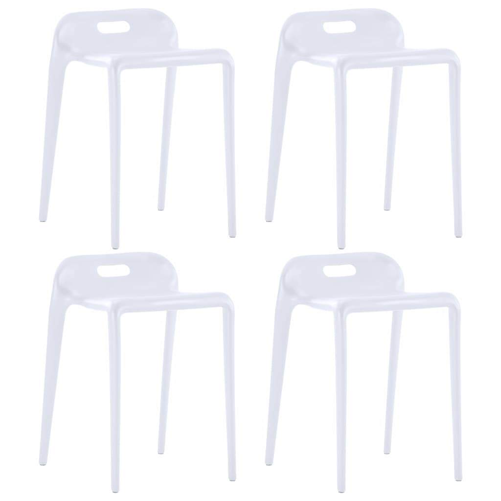 This stackable stool set which consists of 4 pieces, with a simple yet chic design, will make a great addition to your dining room or kitchen. Made of plastic, these stools are sturdy and easy to clean. Thanks to the lightweight, they can be easily moved around. What's more, the dining stools can be stackable for saving storage space when not in use. And they are suitable for both indoor and outdoor use. Delivery includes 4 stools.