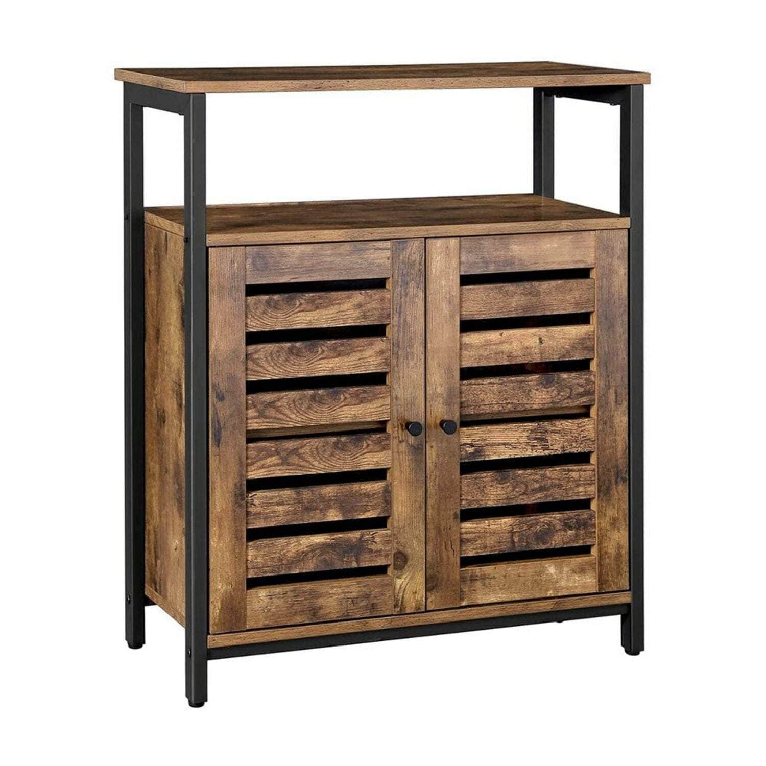 VASAGLE Standing Cabinet Storage Cabinet Accent Side Cabinet with Shelf Cupboard with Louvred Doors Rustic Brown