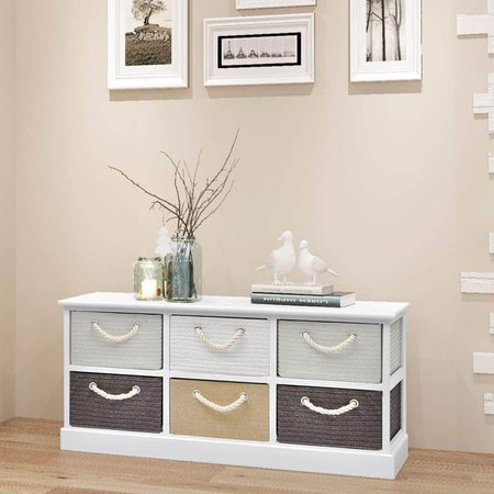Add a touch of rustic charm to your home with this simple yet stylish wooden storage bench! It can be used in the hallway, living room and bedroom. This cabinet has 6 drawers, which provide ample space for keeping smaller items organised and within reach. The drawers with string handle add to the rural style. The drawers can be exchanged. The storage bench can also be used as a hall bench, entryway bench, drawer cabinet, hall cabinet, storage cabinet, etc.