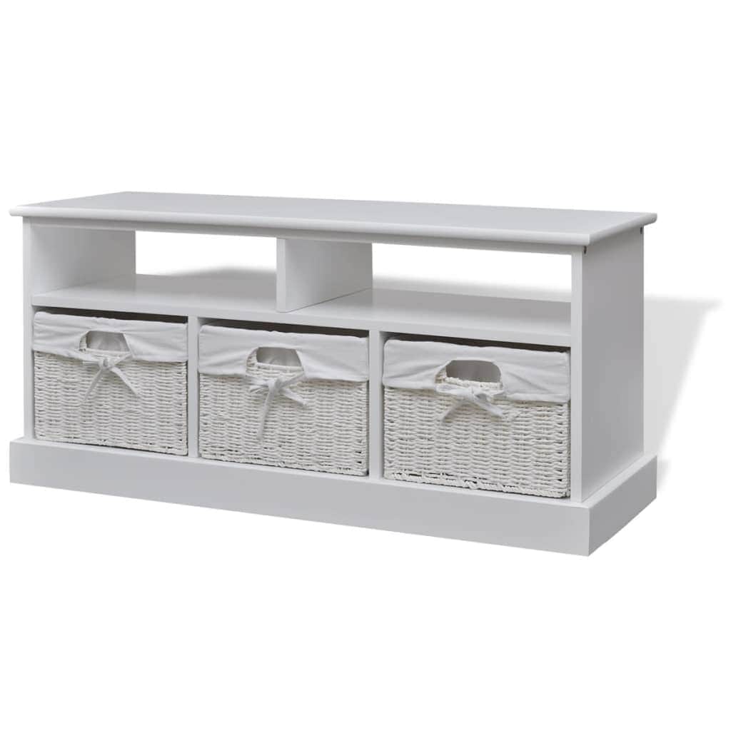 This storage bench, made of high-quality material, will give you ample storage space while adding romantic touch to your room decor as well. It includes three woven baskets, all of which are very sturdy. Each basket has a washable fabric liner. This durable cabinet will look great on your porch, in your coatroom, bedroom or any other room in the house.