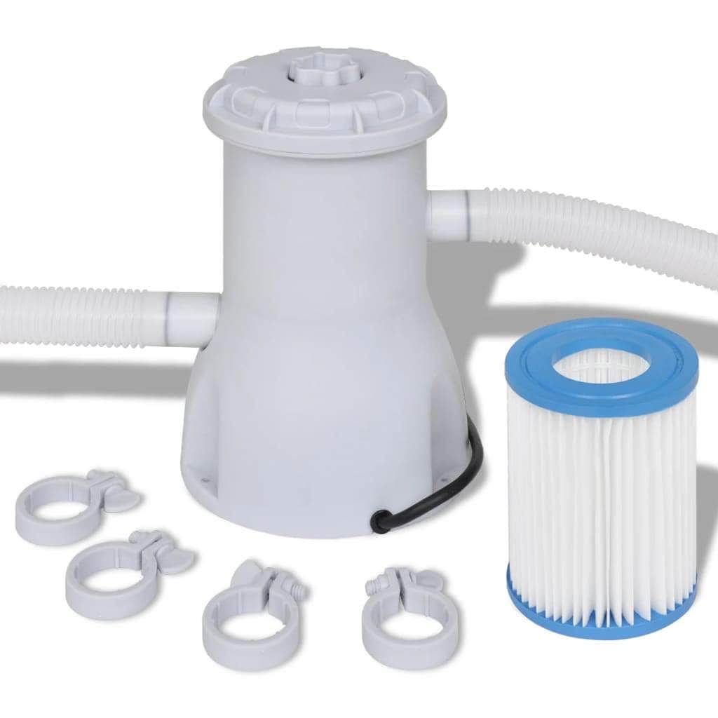 This filter pump provides fast and effective water circulation to keep the pool water clean. It delivers excellent filtering performance with 530 gallons per hour, which equals to 2000 L / h. The filter in the pump housing can be quickly removed for debris-tipping and cleaning. You can also find the replacement filters in our shop with the SKU 90568. Thanks to the reinforced plastic housing, this pool filter pump ensures all-weather performance, offering a long-term service life.