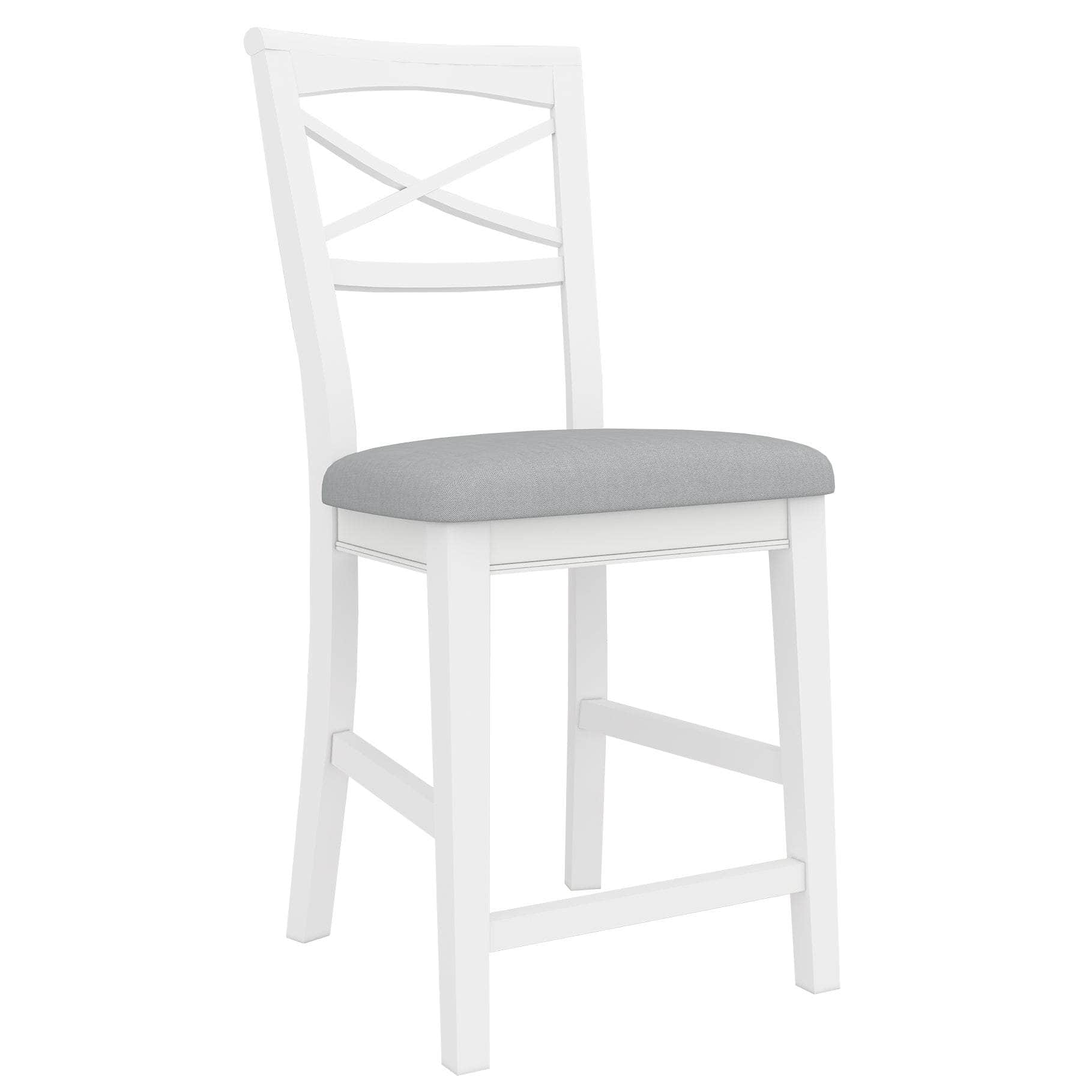 A nice bar chair, with appropriate leg room and a comfortable back, enhances the appeal of your bar area. To enjoy the atmosphere of your bar space, decorate it with this beautiful Hampton-style bar chair. The chair is upholstered with 100% polyester in a light grey colour. Because of its wooden construct and cross back design, it is a great addition to your bar area. It looks stunning in all decor settings, thanks to its homely design and white colour. The beautiful white chair is made of high-quality Solid Acacia Wood and MDF, obtained in a sustainable manner. The wood makes the chair surface silky smooth, super strong, and also resistant to moisture and extreme temperatures. A one-year warranty is included with the fully assembled bar chair.