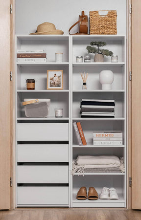 Three Shelf/Four Drawer Built In Wardrobe - Classic/ Nordic Ash/Fluted/Hamptons/Natural Oak