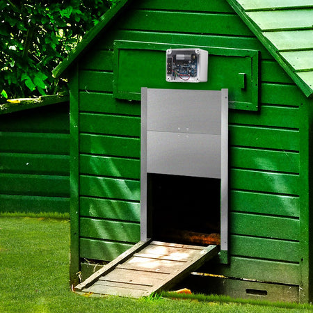 This chicken coop door is made of durable aluminum with exceptional resistance to rust and corrosion. The control panel is covered with water and UV proof covering to prevent unexpected environmental damages.