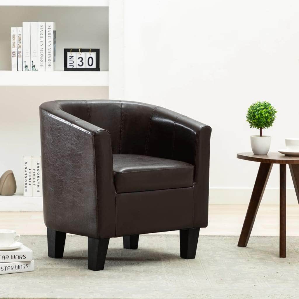 What can be better than relaxing in a comfortable armchair at the end of a busy day? Our armchair will be the first thing you want to head for after a long day. The tub chair is upholstered with faux leather, which makes it easy to clean. The solid wooden frame makes the sofa chair sturdy and durable. Thanks to the thickly padded seat and backrest, the tub chair is the perfect place for you to sit comfortably and fully relax while reading, chatting, watching TV or listening to music. The relaxing chair is easy to assemble.