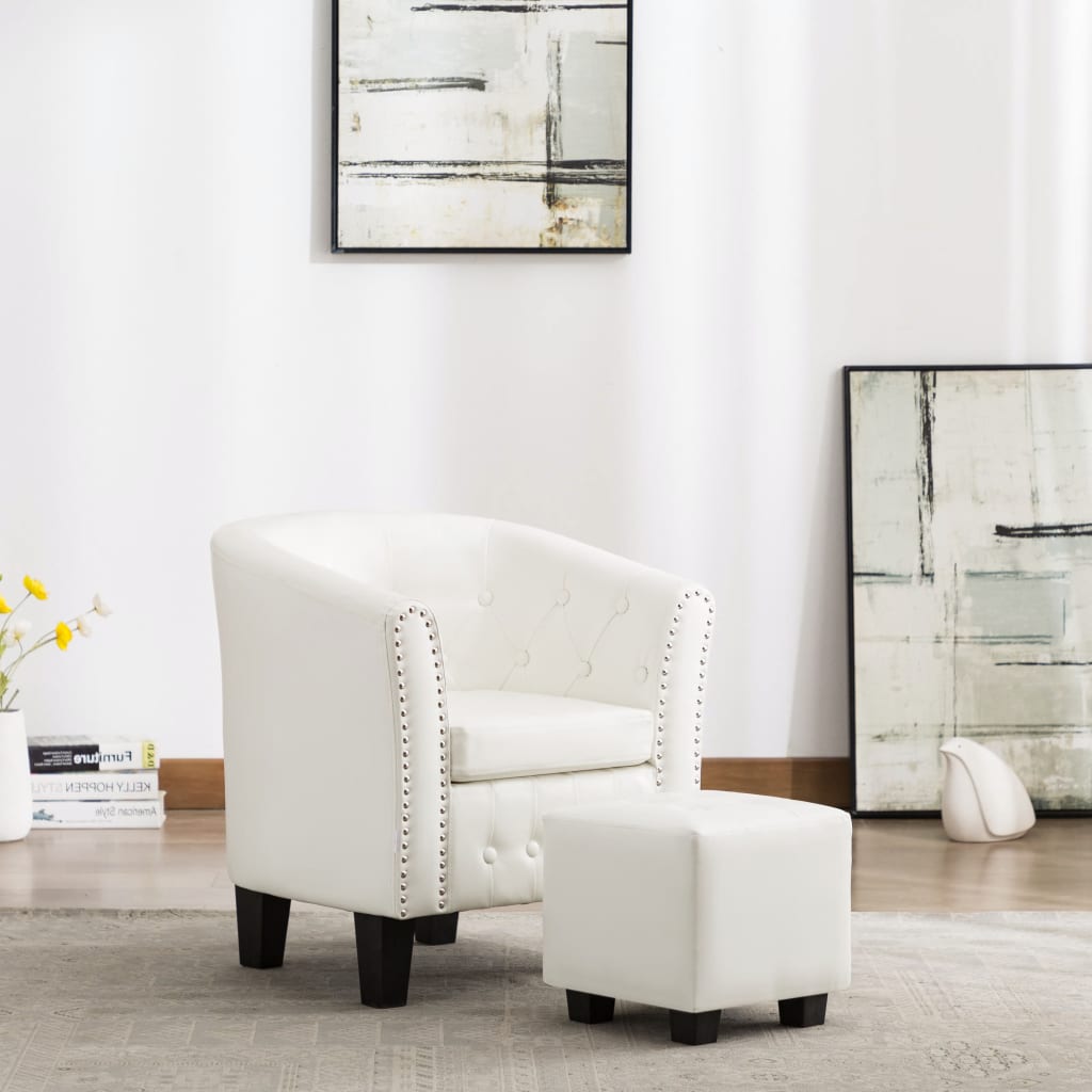 What can be better than relaxing in a comfortable armchair at the end of a busy day? Our chesterfield tub chair with footstool will be the first thing you want to head for after a long day. The tub chair is upholstered in faux leather, which makes it easy to clean and durable. The solid wooden frame makes the sofa chair sturdy and stable. Thanks to the thickly padded seat, backrest and armrests, the armchair is the perfect place for reading, chatting, or just relaxing. The sofa chair is easy to assemble. Additionally, the footrest will also bring you extra sitting comfort. Delivery includes 1 armchair and 1 footrest.
