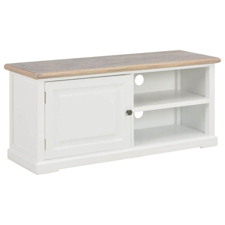 Featuring a trendy yet practical design, this wooden TV cabinet will definitely become a focal point of your room. Made of MDF and solid Paulownia wood, this modern TV stand features 1 door and 2 open compartments for keeping various of items such as multimedia appliances, gaming consoles and magazines, etc. Thanks to the 2 cable accesses, all the cables will be neatly hidden. Our HiFi cabinet is easy to assemble.