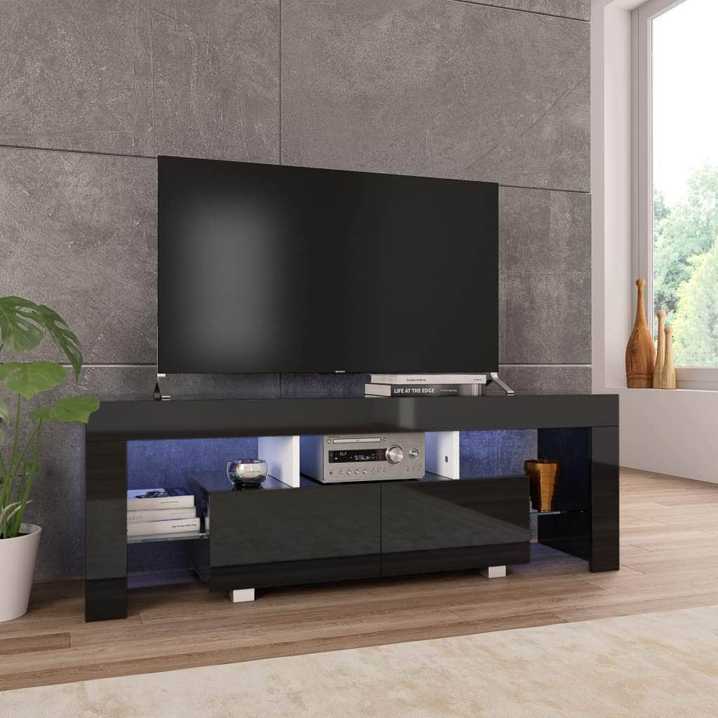 Anchor your living space in ultra contemporary charm with this elegant TV cabinet! Featuring a trendy yet practical design, this TV cabinet with LED lights will definitely become a focal point of your room. The sturdy construction of this HiFi cabinet makes it highly durable. The high gloss finish exudes an elegant look, making the lowbaord perfectly suit any decor. There is ample space remaining for you to keep your DVD player, game console, streaming device and media carriers neatly organised. Additionally, the included LED lights underline the modern look and contribute to the trendy feeling. The TV stand is easy to assemble. Our TV lowboard will be an absolute must for your home!