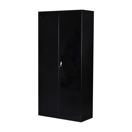 The cabinet is constructed with solid cold-rolled steel plate for excellent sturdiness and durability, not to mention an attractive look. The steel is also powder-coated to resist corrosion. The cabinet measures 185 x 90 x 40 cm, and the maximum recommended weight capacity is approximately 40kg per shelf.. Privacy and security are assured with a simple lock and key design on the double doors. The lock comes with 2 keys.