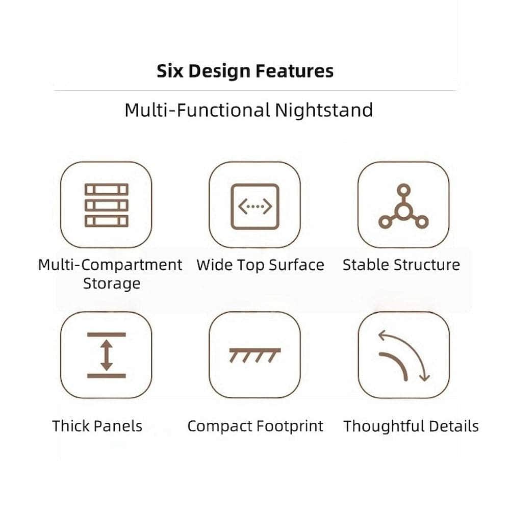 This Nordic-style bedside table features a modern minimalist design, combining warm white with natural wood grain surfaces, creating a cozy and comfortable visual effect. The upper section is designed with open storage areas, including a tray-like top and two separated compartments, perfect for organizing various small items. The bottom section features two spacious drawers with natural wooden round knobs, simple yet warm. The elegant curved side design adds a soft touch, while the four small wooden round legs elevate the overall height, making floor cleaning easier. This bedside table is stylish and practical, suitable for various modern bedroom styles.