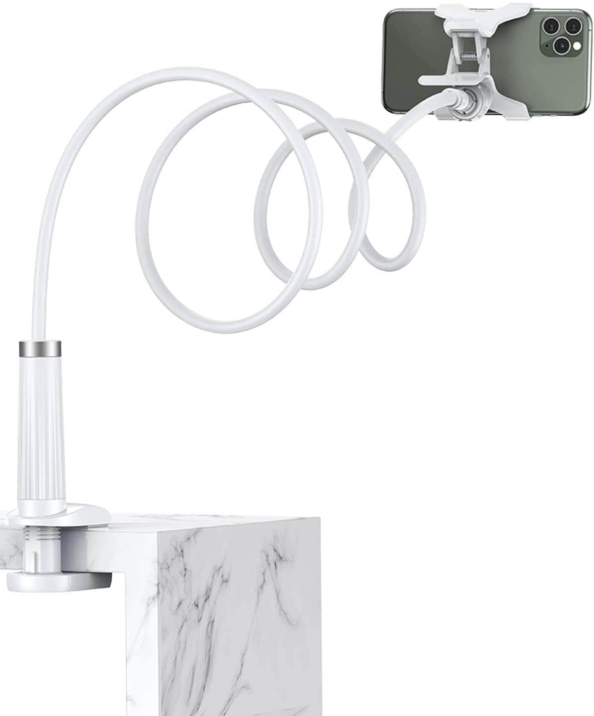 UGREEN gooseneck phone holder with clamp allows you easily to twist its long arm to the proper position as you need, a lifesaver for protecting you from neck pain. It is a quite flexible overhead lazy phone mount for watching videos, facetime calls, reading, playing games or taking a virtual class when you are in a bedroom, living room, kitchen, office, gym and even laying in bed or sofa.