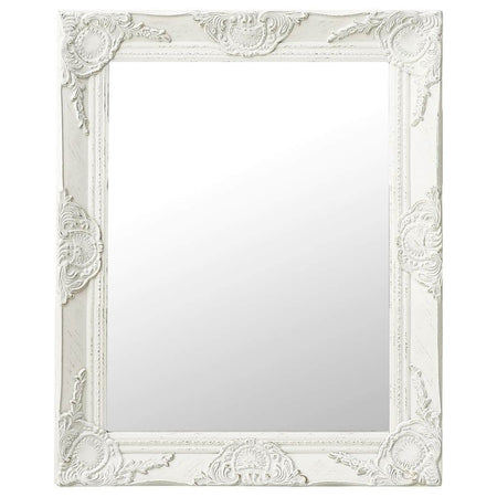 This beautifully designed wall mirror with an ornate frame creates a classic atmosphere in your dressing room. The antique-look mirror features a sturdy wooden frame that is meticulously crafted in a decorative Baroque pattern. Additionally, the bevelled edge gives this mirror a unique look. The mirror is ready to be wall-mounted thanks to the already installed hooks on the backboard.