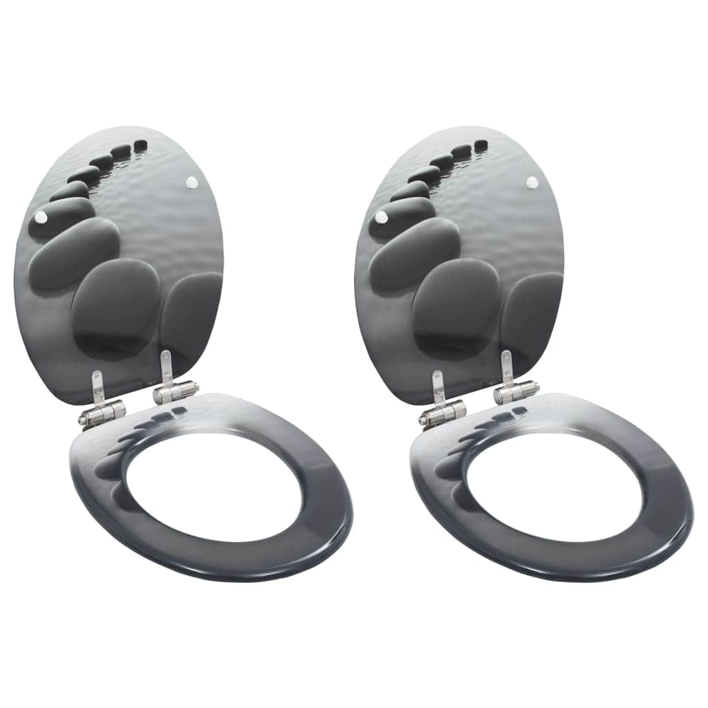 This toilet seat, with its spectacular look, will be a truly eye-catcher in any bathroom. It will not only add a touch of intriguing style to your bathroom, but also is considerably durable. Its MDF lid and seat are exceedingly sturdy and hard-wearing. The hinges are made of extra strong chrome-zinc alloy. Additionally, the toilet seat features soft closing function, enabling it to close and open gently and quietly both to prevent noise being made, as well as give you a long lasting lifetime. This toilet seat fits all common toilet bowls as the hinges can be adjusted in width from 12 to 20 cm. It is also simple to install and easy to clean. Delivery includes 2 toilet seats with lids.