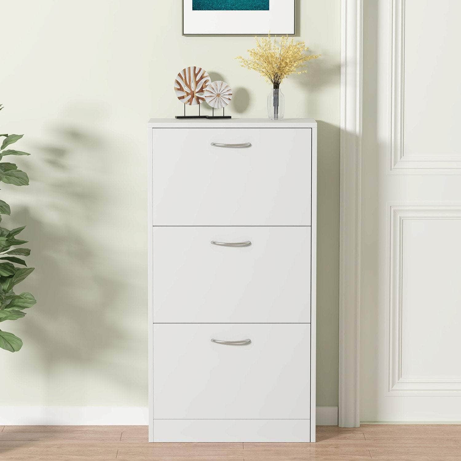 The Sarantino Mavis Shoe Cabinet is a versatile addition to any home. This contemporary shoe storage solution features a high-quality melamine finish, combining style with durability. Its sturdy construction boasts three pull-out drawers, providing ample space for your footwear or other essentials. Its smooth surface makes for easy maintenance. Enhance your home organisation and aesthetics with the Sarantino Mavis Shoe Cabinet.
