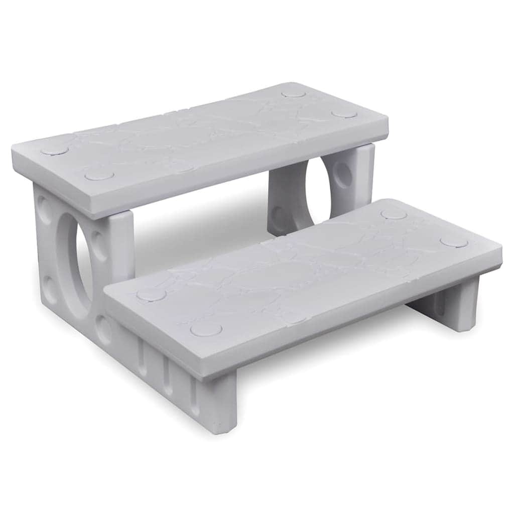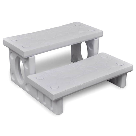 These sturdy, high-quality spa steps with a non-skid surface will provide you with a convenient way to access to your hot tub. These steps have 2 reversible treads each with a straight and a curved edge, which make them suitable for both flat-walled and circular hot tubs. Made of high-quality, strong, thick plastic, these steps are lightweight yet strong.