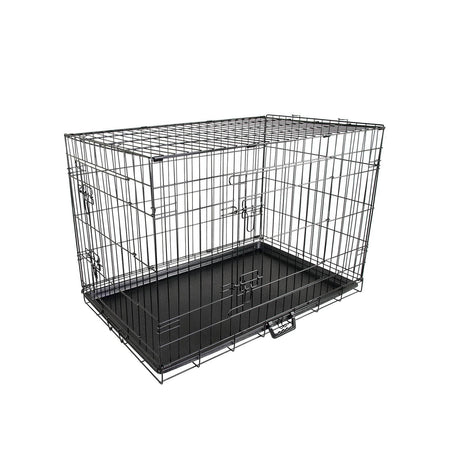 This convenient wire dog crate feature double access doors that provide easy access for your dog to easily enter and exit, as well as dual safety locks on each door to keep your pup securely inside. Built with quality sturdy wire construction with black powder-coated finish. The slide-out / removable plastic tray for easy cleaning.