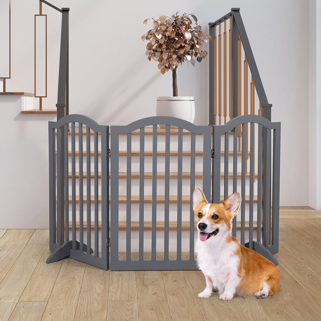 Use the included feet to provide extra stability to your dog gate. Each hinge opens smoothly for your pet gate. Keep each panel at an angle to keep it firmly upright.