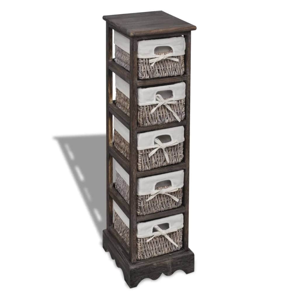 This 5-layer storage rack, made of high quality wood, features a simple but stylish design. It not only stores your stuff but enhances your room decor as well. Coming complete with five weaving baskets, this durable wooden rack provides you with plenty of space to store your valuables, and at the same time brings country style to your room. Our wooden rack will surely be one of your favorite furnishings in any room. Warning: To prevent it being overturned, this product must be used with the provided wall attachment device.