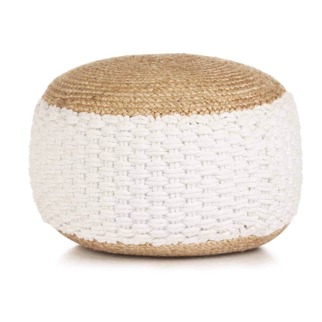 Sit down on the pouffe or put your feet up on it and relax! Our modern and trendy woven/knitted pouffe will make a practical as well as decorative addition to your home decor. The footstool is made of jute and cotton and filled with EPS foam balls to make it highly comfortable. Place the pouffe in front of a sofa or an armchair, and it will contribute to a cosy ambience in any room!